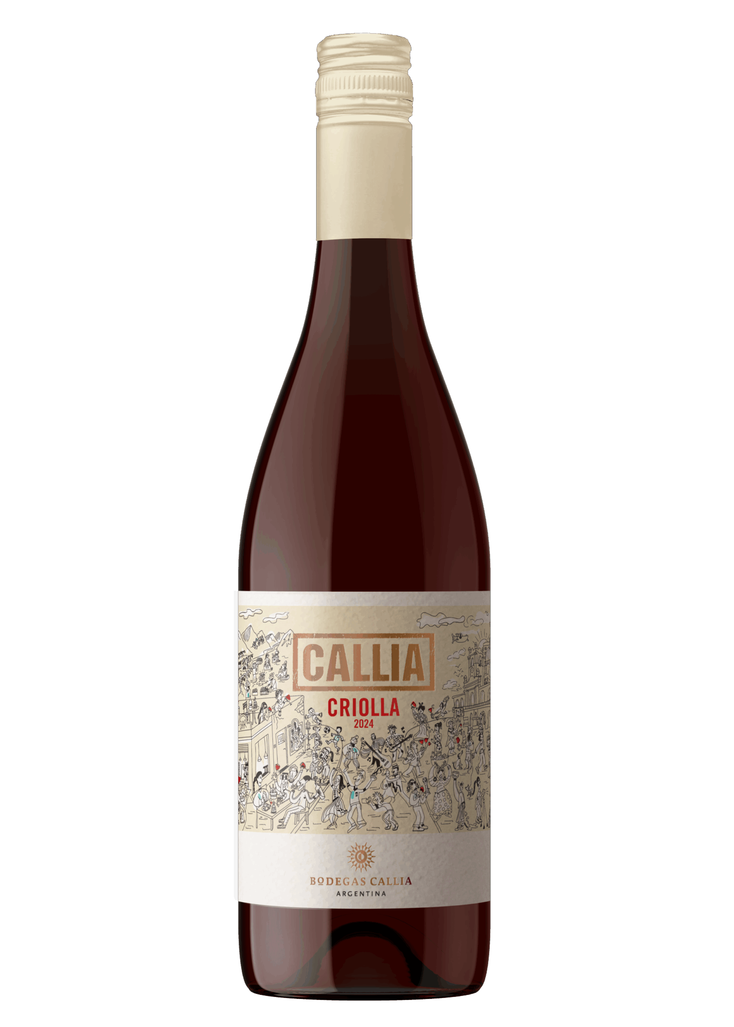 Callia Criolla está elaborado con uvas 100% Criolla Chica, provenientes de viñedos antiguos ubicados en el Valle de Tulum, San Juan, a más de 600 m s.n.m. Allí, la familia Rufrano —de raíces italianas— cultiva viñas desde hace casi un siglo, forjando un legado que hoy sus bisnietos mantienen vivo. Sus fincas conservan tradicionales parrales de Criolla Chica con más de 75 y 85 años de antigüedad, que han perdurado a través del tiempo y hoy dan vida a Callia Criolla, un vino que expresa con autenticidad la tradición vitivinícola sanjuanina. A la vista, se presenta con un color rojo rubí brillante; se pueden apreciar aromas frescos a frutillas y cerezas, mientras que en la boca se destaca por su elegancia y frescura. Su acidez equilibrada y su estructura suave lo convierten en una opción versátil, ideal para disfrutar en cualquier ocasión.