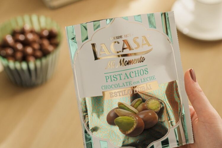 La tradicional marca española, que produce chocolates desde hace más de 170 años, presentó su nuevo y esperado lanzamiento: las grageas de pistacho estilo Dubái. Con una estructura bicapa, combina un núcleo de pistacho, una suave crema de pistacho tipo kataifi y una cobertura de chocolate con leche, logrando un equilibrio perfecto entre crocancia y cremosidad.