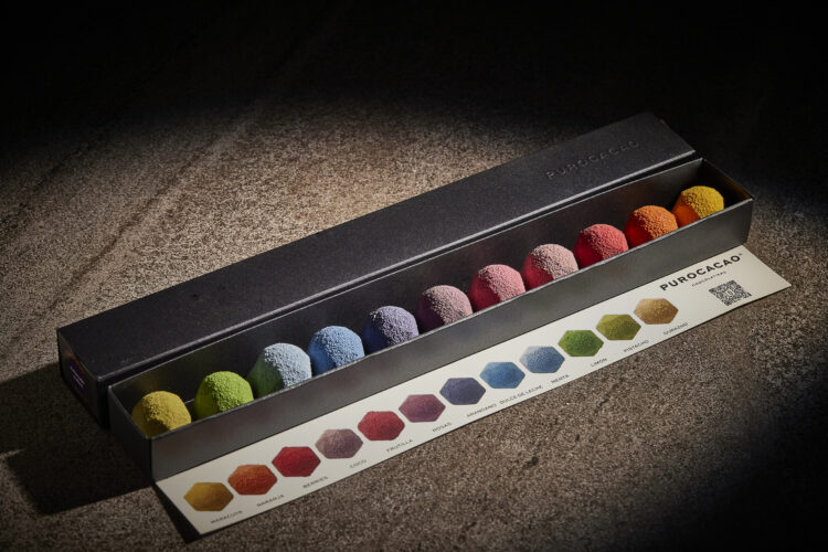 Creada por Rodrigo Bauni –fundador de PUROCACAO– y su equipo de su Chocolatiers, los bombones están rellenos con una crema untuosa de chocolate combinada con frutas y dulces como durazno, maracuyá, naranja, berries, coco, frutilla, rosas, pistacho, arándanos, menta, dulce de leche y limón.