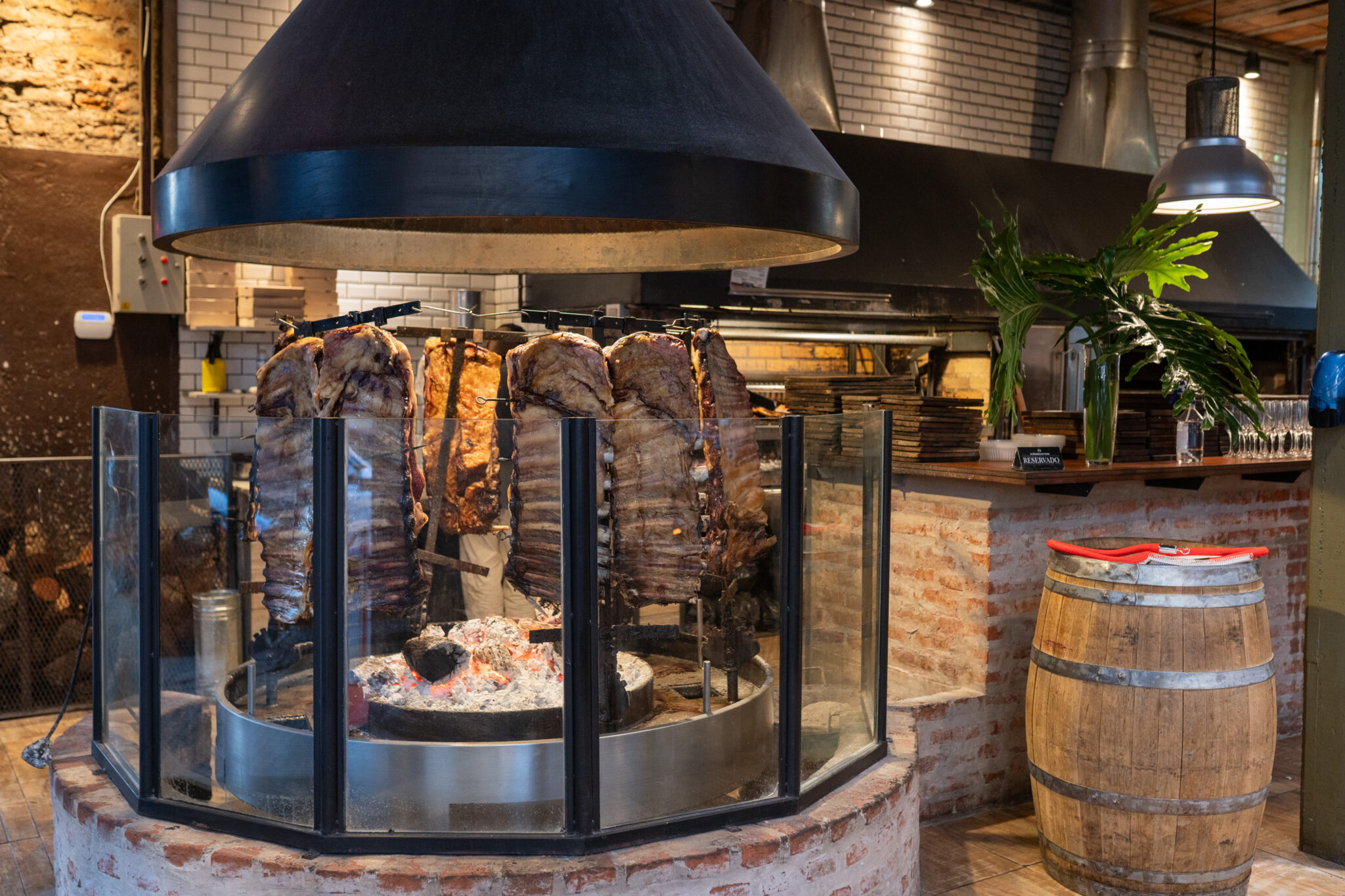 Con capacidad para 250 comensales, su carta se destaca por ofrecer una variedad de platos, donde la parrilla y el asador son los protagonistas. Entre sus especialidades, se encuentran el costillar al asador, cocinado lentamente durante 4 a 6 horas sobre brasas de quebracho, lo que garantiza una textura jugosa y tierna, las carnes como el vacío, la tira de asador. Los clientes pueden elegir su punto de cocción preferido, mientras que el costillar se sirve en su punto óptimo, jugoso por dentro y dorado por fuera. Las guarniciones, como papas fritas, puré, ensalada mixta, chimichurri y salsa criolla, complementan perfectamente cada corte de carne.