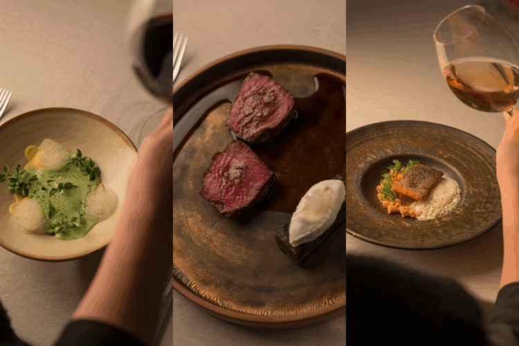 Desde la bienvenida, los comensales son guiados en un recorrido por los sentidos, donde cada detalle está cuidadosamente pensado: panera artesanal, entremeses delicados, una selección de entradas, principales y postres, y el acompañamiento ideal de vinos. El servicio incluye aguas. Luego pueden optar por disfrutar de la cuidada selección de café e infusiones acompañados por petit fours.