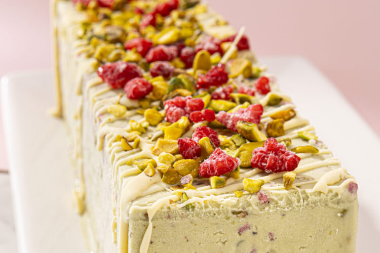 Preparado con helado de pistacho elaborado a partir de ingredientes 100% naturales y la exclusiva leche Jersey de Munchi’s, este postre despliega una textura sedosa y un sabor intensamente cremoso. En su interior, se combinan semillas de pistacho y frambuesas frescas, mientras que su exterior se viste con una delicada cobertura de chocolate blanco, frambuesas y trozos de pistacho.