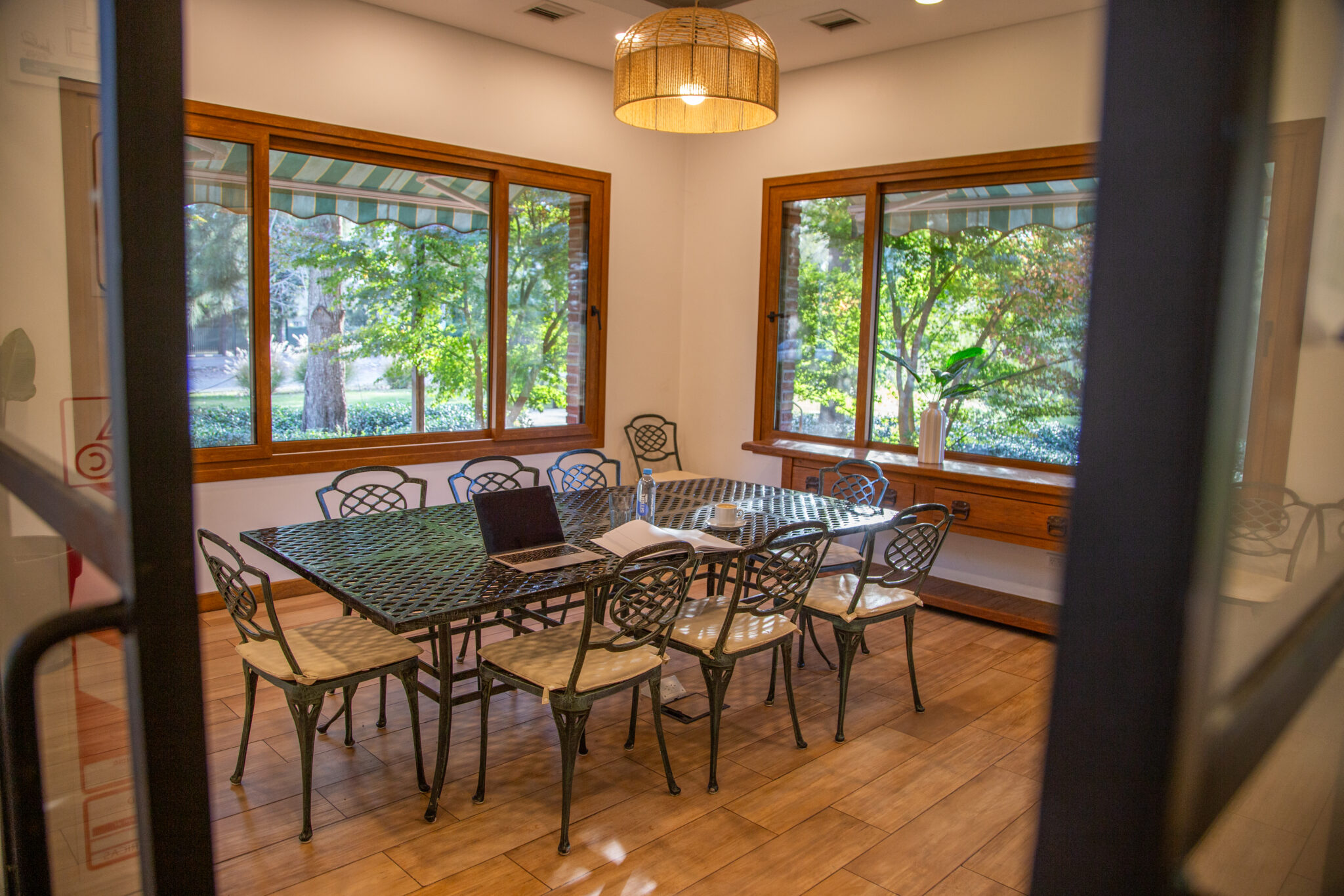 Un lugar rodeado de naturaleza ideal para encuentros de trabajo, reuniones, workshops o eventos corporativos. Cuenta con 3 salas -dos para 6 a 10 personas y una para 16-20 personas-, WiFi de alta velocidad, proyector, TV, rotafolios y el servicio de gastronomía de la marca para pasar una jornada única.